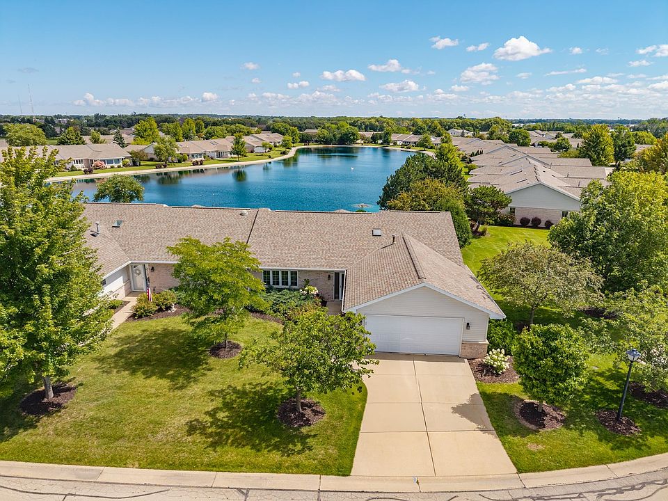 Panoramic waterfront views at High Demand River Pines Condo, incredible quiet gated community w/golf course, clubhouse w/indoor pool & hot tub, party room, workout facility, tennis courts & more! Become a part of a treasured community & live your best life w/ease & comfort. Monthly fees cover snow/yard maintenance. The condo has a flexible layout that could be a 2 or 3 bedrm unit, the 3rd bedrm could function as an office/library or 3rd bdrm. Primary suite w/water views, walk-in closet, primary bath w/heated floors, walk-in shower, 1st floor laundry (washer/dryer included). Custom kitchen, appliances included, lunch counter, add'l open concept dining, living room & cozy sun rm to enjoy all the views! Heated attached garage. Estate sale, sold as is, where is. Call today for your showing!