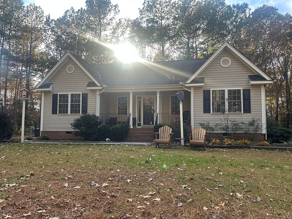 Beautiful Split Style Ranch Home on 5 private acres! Freshly Painted and Move in Ready, this inviting split style ranch offers an open, airy floor plan ideal for modern living. Luxury Vinyl Plank Flooring flows throughout the home leading to a spacious Family Room with a Soaring Cathedral Ceiling that creates a bright and welcoming gathering space. The Primary suite is on one side of the home for added privacy and features a walk-in closet and a private bathroom with a large soaking tub. Two additional bedrooms are located on the opposite side of the home, each with double closets and easy access to the hall bath. The dining area seamlessly connects to the stylish galley kitchen and provides ample cabinet and counter top space, a pantry and a peaceful view overlooking the expansive backyard! A convenient laundry room provides additional function and storage! Outside you will love the 5 acre setting with beautiful privacy and abundant parking for guests, equipment, or recreational vehicles. A wonderful opportunity for anyone seeking comfort, space and quiet country living!