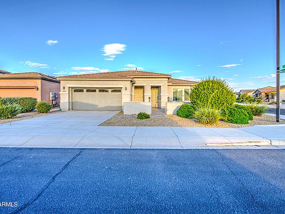 Welcome to the beautiful and sought after subdivision of Estrella Ranch. Located in this amazing adult community with a ton of amenities this is a corner lot home in immaculate condition. 2 primary bedrooms each with their own bath, a den, large living room and dining area. Your new kitchen offers granite countertops, island with breakfast bar, tile backsplash, stainless steel appliances, and upgraded cabinetry with lots of storage space.. 3 Car Tandem garage with cabinets. Cozy back yard with covered patio, easy to maintain landscaping, and plenty of room to relax and entertain. Come find the retirement home of your dreams. You will love this one!