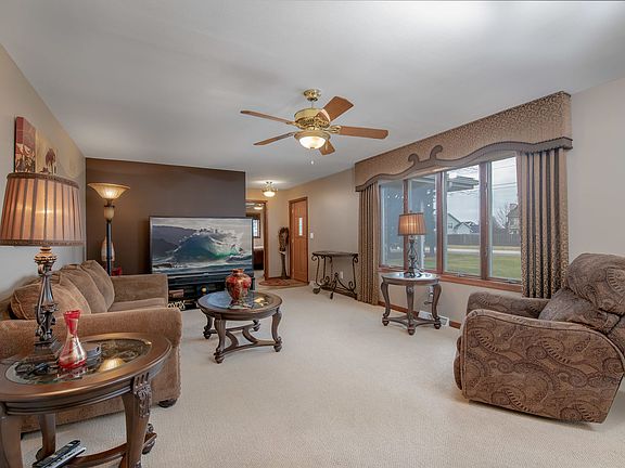 Get your hands on this fantastic 4 bedroom, 3 bathroom ranch home on 2.5 acres. This home has everything you need. The large eat-in kitchen features custom made cabinets, custom backsplash, under cabinet lighting, an abundance of storage space and SS appliances. The living/dining combo have custom made window treatments with silhouette shades. Each bedroom features a ceiling fan and window treatments. The Master bedroom has a custom built wall unit perfect for more storage, an ensuite bath and a walk-in closet. Off the master is a an atrium complete with hot tub and access to an outdoor deck. Your large family room boasts vaulted ceilings and skylights with a door out to the large outdoor patio. The backyard is built for a party with an in-ground pool with a slide & diving board, a custom built paver brick patio with fire pit, 4 car heated garage with plenty of storage, a 10X12 pool shed and 2 10x18 additional sheds.