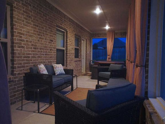 3/2/2 Brick & stone. Front porch w/room for sitting & relaxing at the end of the culdesac. Enter through gorgeous full glass prism door into a large entry & living area. Corner fireplace is ventless natural gas w/logs. No messy wood or worry where to keep it. No chimney poking through roof to create problems. Fireplace has remote w/thermostat. Just turn off when you want & don't worry about embers. Large kitchen is open to living & dining area. Huge island w/raised bar on living & dining side. All kitchen counter tops are granite. 2 large back porches. 1 screened w/full length outdoor drapes. Included is all furniture & HotSpring hot tub in screened porch. Your own private oasis! Master bath back door opens at hot tub area for convenience. Other back porch is covered & has 3 lighted outdoor ceiling fans. Great area for an outdoor kitchen. Included is natural gas grill! Brand new roof. Electronic gate. Too many extras to list here. Ask your agent for more info. Many hidden extras!