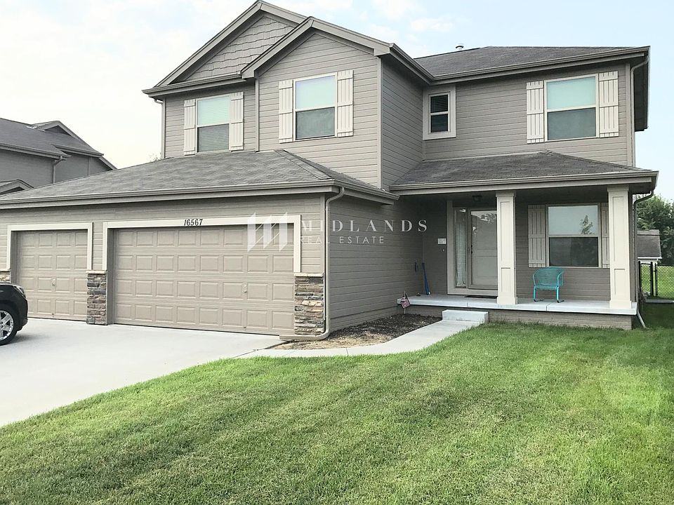 This spacious 4 bedroom, 2.5 bathroom home with an unfinished basement. Large 3 car garage with a drop-zone. The kitchen features maple cabinets and a pantry for extra space. Wood floors can be found through the kitchen, dining room, powder room and drop zone. Primary Suite has a slopped ceiling, walk-in closets and a double vanity. Laundry is also conveniently located on the 2nd floor. Yard with patio. Pets are allowed with owner approval and a monthly pet charge. Located between Blondo and Maple, just off 168th. Walking distance to neighborhood park; quick, easy access to the highway; minutes from Village Point shopping and restaurants. Property listed by Midlands Real Estate. View all of our available properties on our website. PHOTOS ARE OF SIMILAR UNIT, NOT A FENCED YARD *This house is not approved for housing assistance. *$35 Application Fee, one application per each adult required.
