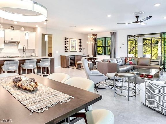 Huge screened lanaiBay windowExtended garageQuartz countertopsBuilt in buffetUpgraded wall tileCeiling fans