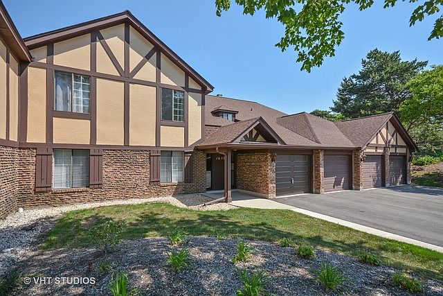 Wonderful first floor unit in desirable Briarcliffe Lakes. Stair-free living with two bedrooms and two full baths. Fall asleep listening to the pond and fountain at night and enjoy the walking paths and water throughout the complex. Some of the many features include: full sized laundry in-unit, including a washer (2012) and dryer; Kitchen has granite counters and newer back splash. The cabinets have been refaced and newer refrigerator (2015) and oven (2016). Master bedroom has a large walk-in-closet and separate stand up shower and sink area. 2nd Bedroom has 2 closets and a hall bathroom with a tub. Furnace purchased in 2007 with brand new blower and central humidifier 2017. One car garage with private storage area and another storage area on the patio. This is a great location close to parks, highly rated schools, shopping and dining. Easy access to expressways. Investors are welcome. A lovely place to call home!