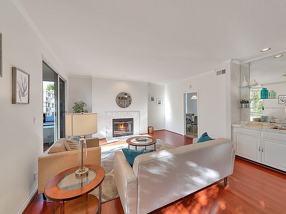 Sophisticated and modern home, upper corner two bedrooms and two baths condo, in desirable Westwood location. Quiet and bright home with views of surrounding trees and greenery. The spacious living room has a fireplace, wet bar, large tall windows and glass doors that lead out to a generously sized balcony.The inviting and newly updated kitchen has white quartz countertops, lots of cabinets and a breakfast nook. Master bedroom has a huge walk-in closet, master bathroom has double sinks, separate shower stall, and tub.The guest bedroom has ample closet space and tall glass doors. Private laundry inside the unit. Central air and heat. 2 tandem parking spaces. This home offers great value for the Westwood/Century City neighborhood. It is only within a few minutes away from UCLA, Santa Monica, and plenty of shops and restaurants nearby.
