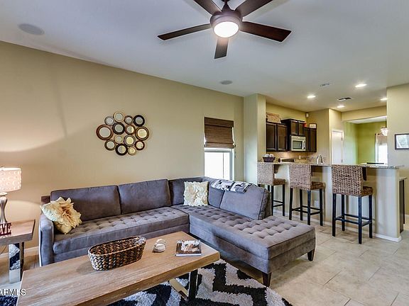 Not your Normal Rental Property, this Home is Highly Upgraded and recently house has new interior paint, new carpet and new window coverings as well! Located in the highly sought after community of Fireside at Norterra. This 3 bed 2 bath great room floor plan has been Immaculately cared for and very lightly lived in. Living here will not feel like a rental but like a home. Inside find Tile Floors, Granite Slab Counters and stylish backsplash, Stainless Appliances, and the kitchen is open to the great room. The back patio is large and covered with pavers overlooking the beautiful grassy yard. You are minutes to the freeway and major shopping, and yet nestled into the mountains in the Fireside community offering Community pool, tennis, parks, gym and hiking trails. Tenants will have FULL ac
