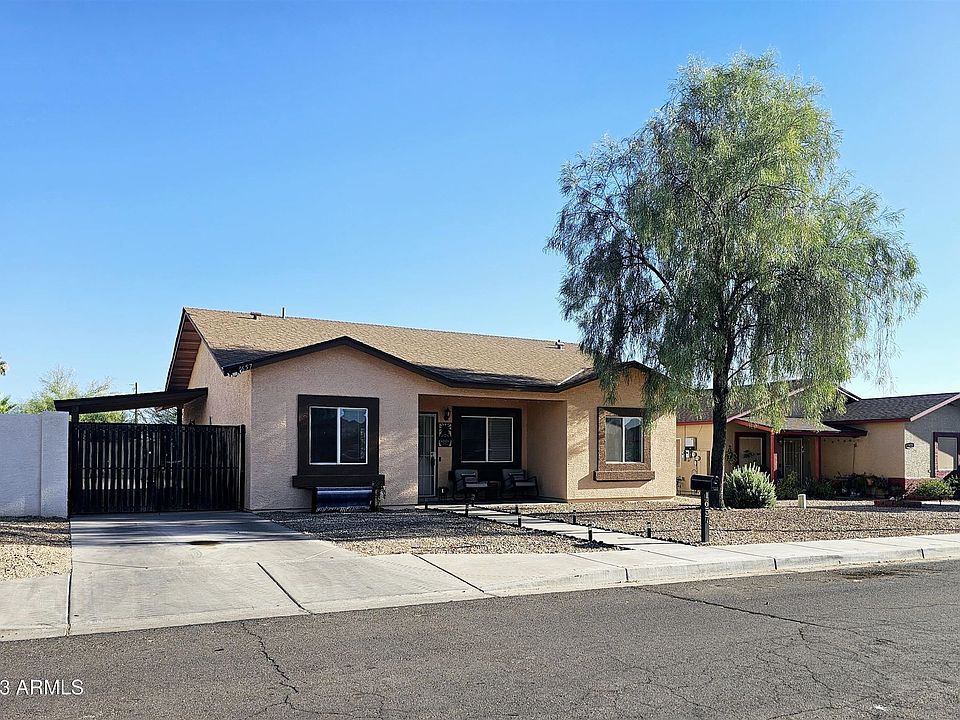 Nice and Spacious Open Floor Plan Featuring 3 bed, 2 bath in a Large Size Lot with a Wide RV Gate, Carport Area, Covered Patio and Storage Shed along with Fully PAID Solar panels. Kitchen Has Solid Oak Cabinetry, Pantry, and Lots of Counter Space. Home Has a Nice and Relaxing Front Porch and Street is on a Cul-De-Sac in a Nice Neighborhood with Lovely Views of Supperstition Mountain. LOCATION LOCATION LOCATION Home is Near Several Shopping Centers, Local Parks, Library, Postal Office, Food Truck Events, Hiking Trails and Only 16 Miles to Canyon Lake and 8.7 Mile to Salt River Tubing and 5.5 Miles to Goldfield Ghost Town.