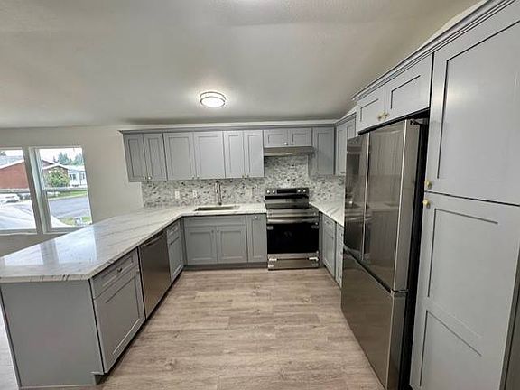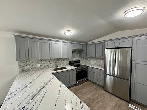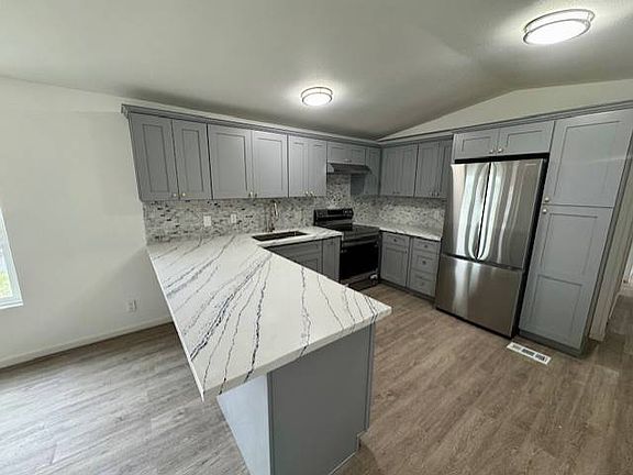 Get ready to be WOWED by this beautiful three-bedroom Fleetwood home in a family community. Cook meals in your updated kitchen which features gray cabinets, Quartz counters, oversized Stainless sink and all new kitchen appliances. There is a large eating bar that is perfect for cooking workspace. With three bedrooms there is plenty of room for a home office, craft room, gaming room; you choose. The oversized bathroom features a double gray cabinet vanity and two porcelain sinks. Finished with detailed Quartz counter tops. You will notice all the touches that this home has. High ceilings, new flooring throughout, base trim, fresh interior paint, tape and texture. On the outside you will see new windows, fresh paint, a fresh roof and quaint front and back doors. Your home backs to nature where you can see birds and amazing scenery. The large side yard is a bonus. Johnson Mobile Estates is a beautiful family community where homeowners take pride in ownership. There is a small lake for catch and release. As well as a picnic area. $962 space rent includes sewer and garbage. Financing or possible Owner Carried Contract available.