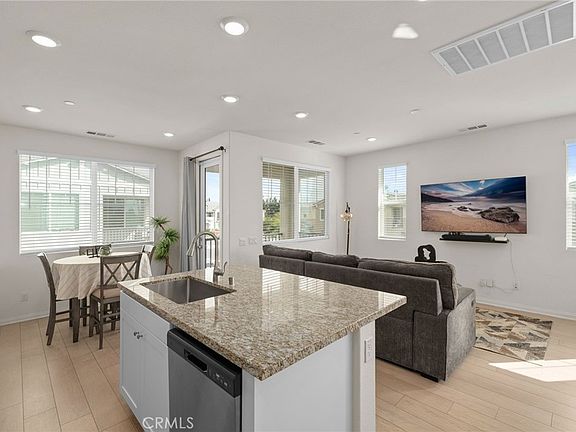 WELCOME TO GABION RANCH -MODERN LIVING WITH COMFORT, STYLE, and CONVENIENCE! Built just a couple of years ago, this beautifully designed condo offers all the benefits of single-level living with the living space situated entirely on the second floor and the entry and 1-car garage conveniently located on the main level. Step upstairs to an inviting, open floor plan filled with natural light, recessed lighting, and elegant LVP flooring throughout. The spacious living area flows seamlessly into the dining and kitchen spaces, perfect for both everyday living and entertaining. The modern kitchen features quartz countertops, a large center island, stainless steel appliances, and plenty of cabinet space. The private primary suite offers a walk-in closet, dual vanity sinks, and a beautifully tiled walk-in shower, while a guest half bath and stackable laundry area add everyday convenience. Enjoy your morning coffee or unwind in the evening on your private balcony with beautiful mountain and community views. Thoughtful upgrades include a Quiet Cool whole-house fan, tankless water heater, solar panels, and a smart home monitoring system, offering energy efficiency and modern comfort. The Gabion Ranch community provides resort-style amenities including sparkling pools and spas, a clubhouse, barbecue and outdoor cooking areas, playgrounds, a dog park, and beautifully landscaped walking paths. Located in North Fontana near shopping, dining, parks, and freeway access, this move-in-ready condo combines modern design, low-maintenance living, and a vibrant community setting. COME, SEE HOW MUCH HOME JUST FELL INTO YOUR PRICE RANGE!