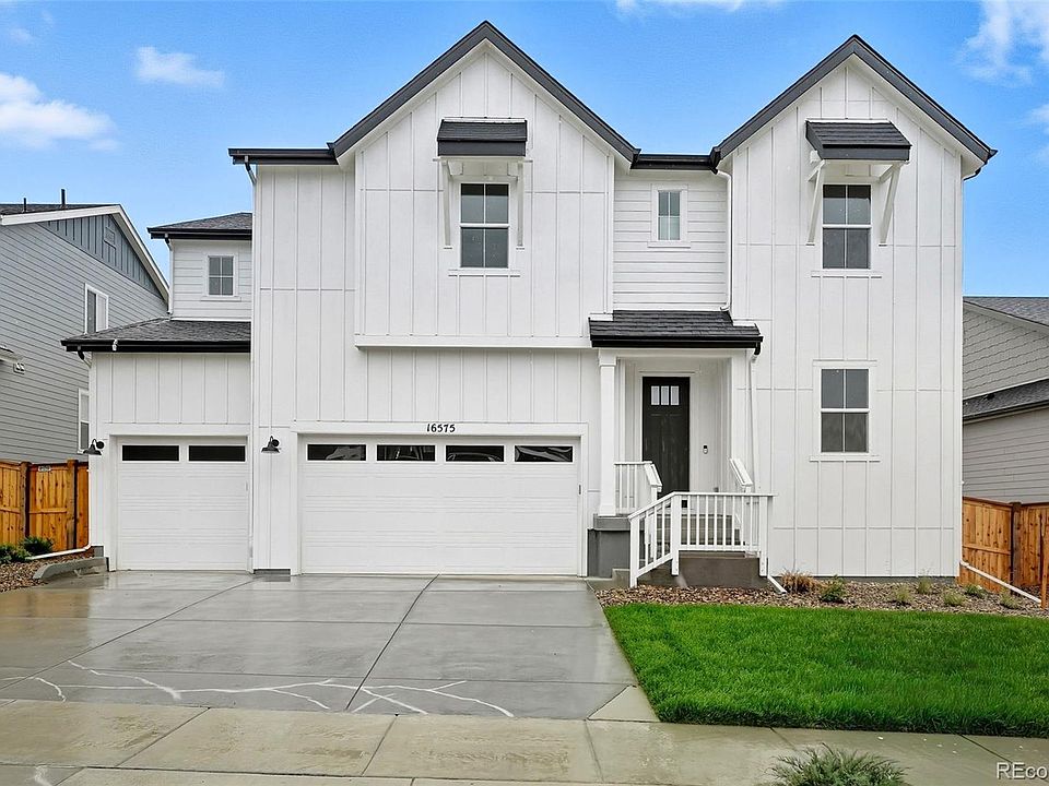 New Construction - Ready Now! Built by America's Most Trusted Homebuilder. Welcome to the Vail at 16575 W 93rd Place in Trailstone's Destination Collection! This stunning new home blends style and functionality, featuring a dramatic great room with soaring ceilings and a modern fireplace, a cozy hearth room with a double-sided fireplace, and an expansive kitchen with a large island perfect for entertaining. Upstairs offers three secondary bedrooms, two full baths, a convenient laundry room, and a luxurious primary suite with dual closets and a spa-like en-suite. A covered patio and unfinished basement add even more flexibility and value. Located in Trailstone, residents enjoy unbeatable value with low HOA dues, breathtaking views of downtown Denver and the Rockies, and access to top-rated Jefferson County schools. Commuting is a breeze with proximity to major highways, light rail, and business hubs like Interlocken and downtown Denver. The community features a planned 5-acre amenity center with a pool, pickleball courts, an amphitheater, trails, five connected parks, a dog park, and a certified Pollinator Garden. With over seven miles of scenic trails and nearby shopping, dining, and recreation, Trailstone offers the best of Colorado living. Additional Highlights Include: Fireplace at gathering room, hearth room in place of playroom, standalone tub and shower at primary suite, and covered patio. Photos are for representative purposes only. MLS#5607872