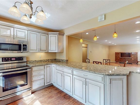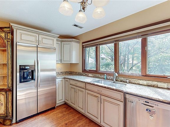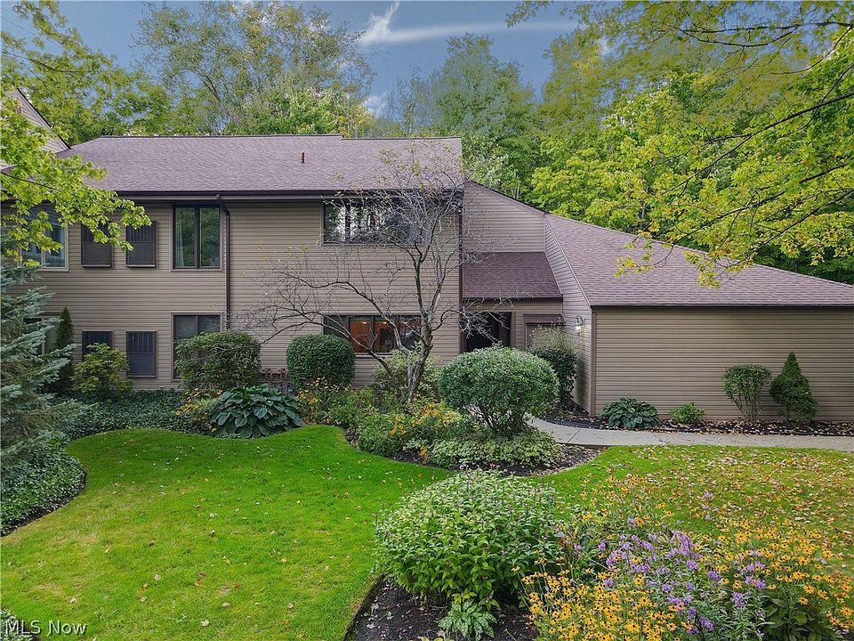 Beautiful First Floor Unit located in 'The Trees" Condominium Development. Desirable private corner unit situated in a park like setting with wooded views. This unit offers an updated kitchen featuring granite counters, newer stainless appliances and loads of cupboard space. You'll also find hardwood floors and a breakfast bar with pendant lighting and room for 4. The combination dining/living room offers plenty of space to entertain guests and has a glass slider leading to a private patio. The owner's suite has an ensuite bath, 2 closets and a slider to yet another patio. There is an additional bedroom and full bath as well as ensuite laundry for easy living. The attached 2 car garage is loaded with storage including shelving and an added pull down storage area. Enjoy beautiful views in both the back and the front of this unit. Conveniently located near shopping, parks,and restaurants. Easy highway access and just minutes from downtown Chagrin Falls. Kenston Schools. This one won't