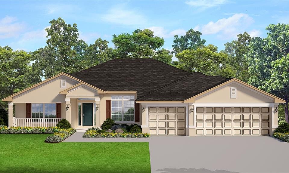 Under Construction. Adams BLOCK AND STUCCO MODEL 2265 ON A .98-ACRE LOT ZONED A-1 WITH NO HOA close to shopping and entertainment. Take in a car show or live entertainment at the Villages Spanish Spring Square only minutes away or have dinner at many of the fine restaurants nearby. You will also be minutes away from the Hwy 484 exit on I-75 for a trip to either Orlando to the East, Tampa to the South or Gainesville to the North. This home is a 4-3 with a side entry 3 car garage and a large, covered rear lanai to enjoy our Florida sunsets. The Home has granite countertops and upgraded cabinets in the kitchen and all bathrooms. We are installing tile everywhere except the bedrooms where we will have soft carpet. The master bedroom will have a tray ceiling and in the master bath, we are installing a 5' tiled shower in place of the garden tub. The living room will have double doors enabling it to be used for a guest bedroom or office. This home also comes with a TAEXX IN WALL PEST CONTROL, IRRIGATION AND A 1 YEAR BUILDER WARRANTY AND 10 YEAR STRUCTURAL WARRANTY. Builder helps with closing costs when Buyer pays cash or closes with a Seller approved lender! Prices /Promotions are subject to change without notice.