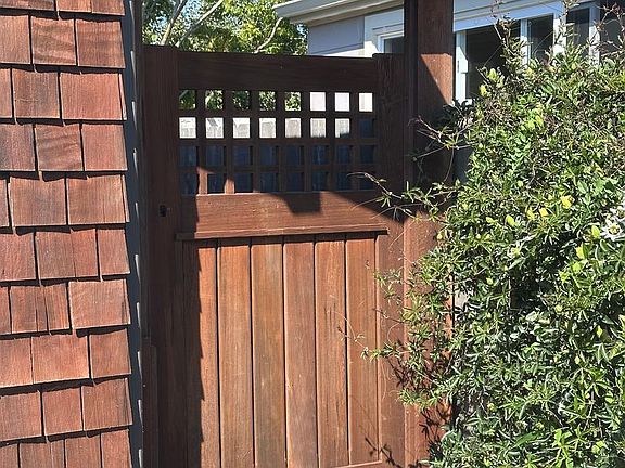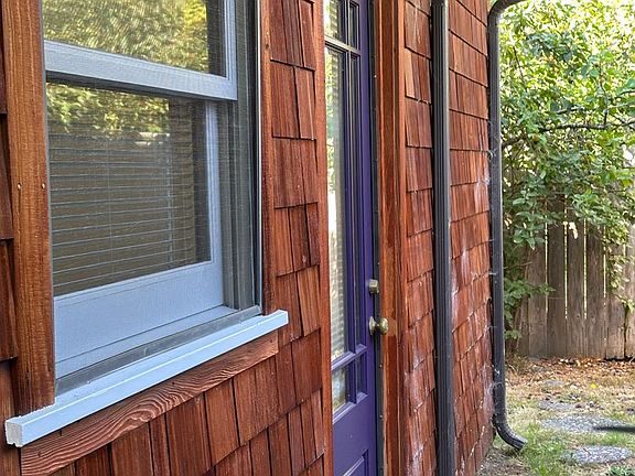 This California Bungalow, in a quiet neighborhood, offers warmth and character, shingle siding, and exposed beam. Beautiful stained wood sash windows bring in natural light making you feel like you are in a private tree house. Soft cream walls, stained wood trim, and custom lighting touches bring this cozy home together.
