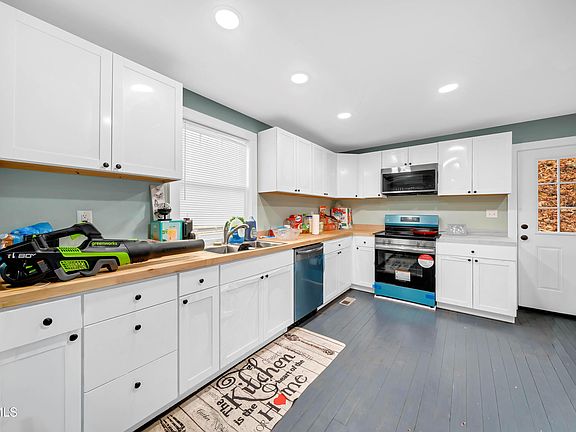 That's right this 4 bedroom 2 bathroom home has been renovated complete with a new roof, hvac unit, cabinets, butcher block countertops, appliances and siding!