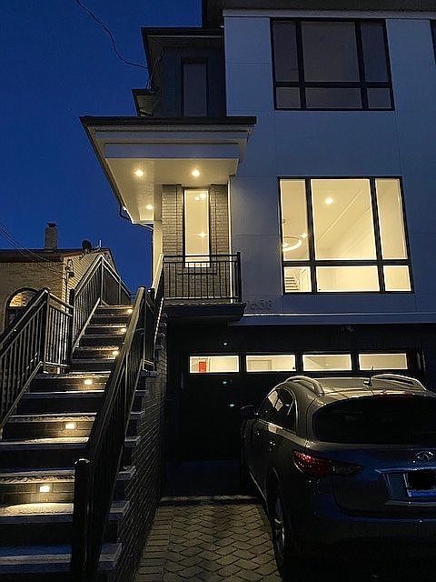 A rare offering of an oversized new construction duplex with over 4000 sq ft within 10 minute walking distance to downtown (Main St.) Fort Lee. This duplex offers 5 bed, 4 full bath and 1 half baths with a bonus room on the ground floor. Ground level you have a large 2 car garage, 8 foot ceilings, powder room along with a Bonus room with in-wall book shelfs, closet and a very large recreation room that walks out to the backyard patio. The main level is an entertainers dream with 10 ft ceilings throughout. Starting from the front door you are greeted by a formal living room, grand dining room, chef's designer kitchen (Miele Designer Appliances) with custom cabinetry. The main living also includes a breakfast room, powder room and private family room with sliding glass doors walking out to a large deck with a privacy wall. The Top level of this home is a real treat with 4 bedrooms and 3 full bath. The Master Bedroom features 2 walk in custom closets and a spa like bath.