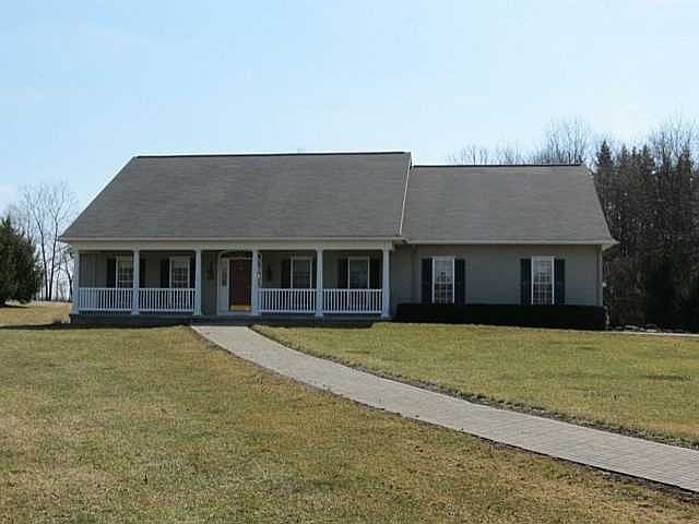 The most unique offering of the year in Rush! Do not miss this gorgeous 2001 built RANCH loaded with natural light. Over sized windows, master suite, dining room, breakfast room great room with cathedral ceilings and built in bookshelves. Four bedrooms!! The land will take your breath away. Horses are permitted. One of a kind pristine outbuilding with room for three cars, a studio and a workshop. Stunning landscaping and a lantern lined meandering drive. Priced to sell! 20k below recent appraised value!! Call today for a private showing!