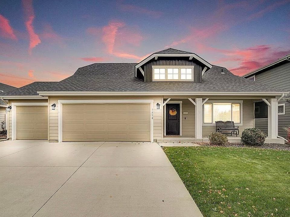 This single-level stunner offers 3 bedrooms, 2 bathrooms, and an open layout with vaulted ceilings and modern finishes. The kitchen features granite countertops and soft close cabinets, while the living room is anchored by a cozy gas fireplace. Enjoy outdoor living with a fenced backyard and covered porches complete with recessed lighting, perfect for gatherings or quiet evenings.