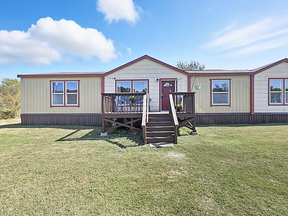 Spacious 2020 manufactured home on 10 acres. The home features a large front porch, 2 living rooms, one with a wood burning fireplace, a master suite with an oversized garden tub, separate vanities and separate walk-in closets. The kitchen features a breakfast bar, plenty of cabinets for storage, and a pantry. On the other side of the home, you will find 3 additional bedrooms with spacious closets, 1.5 bathrooms, plenty of storage closets, a built-in desk, and large laundry room. Outside you will find a 24x30 steel barn that could be used for covered parking or a dream workshop. RV site with 30-amp meter. The property is fenced and cross fenced. The back of the property has plenty of timber and has a creek flowing through. Perfect for hunting and exploring. No known restrictions or flood zone. True country living only minutes from shopping, dining, parks, major Highways for easy commuting, Lake Texoma, and Hagerman National Wildlife Refuge. QUALIFIES FOR ASSUMABLE LOAN! FHA 3.75 INTEREST RATE!