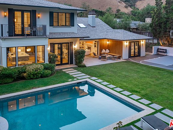 This Spectacular Gated Elegant Hamptons Estate exudes class while capturing today's modern living by providing an exhilarating indoor-outdoor experience perfect for entertaining. This is truly a one-of-a-kind property with six en-suite bedrooms, majestically set back from the street with plenty of onsite parking, top of the line outdoor Viking BBQ, Saline Pool, Spa, Fire Pit, and a Half court Basketball making this backyard the quintessential resort style living. As you enter the light and bright formal living room you immediately feel the room filled with natural light through the skylights and vaulted ceilings. The intimate wet bar in the living room leads you to the Gourmet Kitchen where you can find a large Center Island/Sink, Wolf appliances, and a built-in breakfast nook overlooking the backyard perfect for a morning coffee. This Magnificent home features Built-in Surround Sound, Chic paneled formal dining room, and Italian Marble Wine Display. Situated in the prestigious Beverly Hills Post Office and 5 mins away from The Beverly Hills Hotel makes this home a true modern gem.