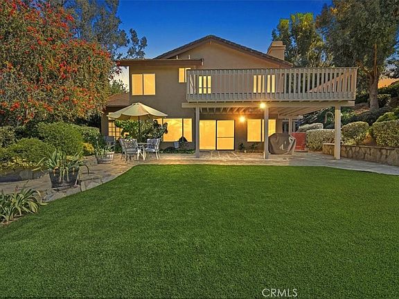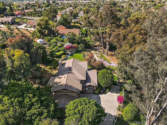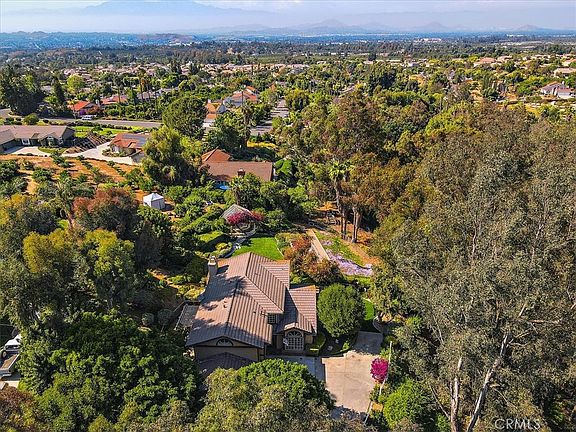 If you’re looking for privacy and seclusion while surrounded by a calming nature oasis in a commuter-friendly neighborhood, this home is a MUST SEE! Located in the highly desirable community, The Orchard, on the west end of Riverside, this wonderful home offers 2,525 sqft of living space with 4 bedrooms, 3 bathrooms and a large bonus room on a 1.31 acre lot. Adorned in natural light and an easy flowing floorplan, the entry opens to formal living and dining rooms featuring beautiful hardwood flooring. A large family room with gas fireplace adjoins a well-appointed, remodeled kitchen with granite counters, stainless appliances including convection ovens and a warming drawer, breakfast bar and a large island with additional seating. A spacious upstairs primary bedroom offers an additional fireplace and an expansive balcony from which to sit and enjoy gorgeous mountain and city lights views. The ensuite primary bathroom features dual sinks, walk-in shower, soaking tub, and sizeable walk-in closet with custom built-ins. The other well-proportioned bedrooms, an updated hall bathroom and the bonus room complete the upstairs. Sellers are currently using one upstairs bedroom as a sitting room, and the downstairs bedroom is being used as an office. The updated downstairs bathroom has a walk-in shower. The real treasure of this home is its serene backyard setting with lots of mature trees, flowering plants, low maintenance artificial turf, above ground spa under a bougainvillea shaded gazebo, custom stone hardscape, and numerous sitting areas including a second large deck made from Trex decking. Other amenities include: cathedral ceilings, quartz counters in both guest bathrooms, ceiling fans throughout, crown molding, 3-car attached garage, fully irrigated yards, an enclosed dog run and more! The serene and tranquil settings of this property make it a uniquely special get-away from the hustle and bustle of daily life. Must see in person to appreciate. Low taxes! Low HOA!
