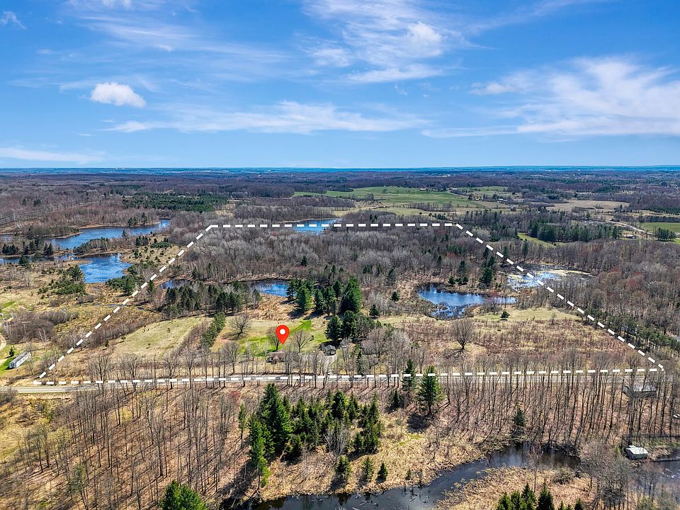 80 acres in a peaceful setting with trails and close to state land. The abundant wildlife makes this ideal for hunting or lovers of nature. The acreage has been blessed with plentiful hardwood and fruit trees. The three ponds provide not only a gorgeous view - but also afford opportunities for water fun such as kayaking. The property has been maintained by a trapper that has kept beavers at bay allowing for the ponds to be at regulated water levels. On a paved road with a blacktop driveway. The insulated pole building is 30 x 40 and has electricity and 12 ceilings. Appliances are included and there is outside water for the garden area.