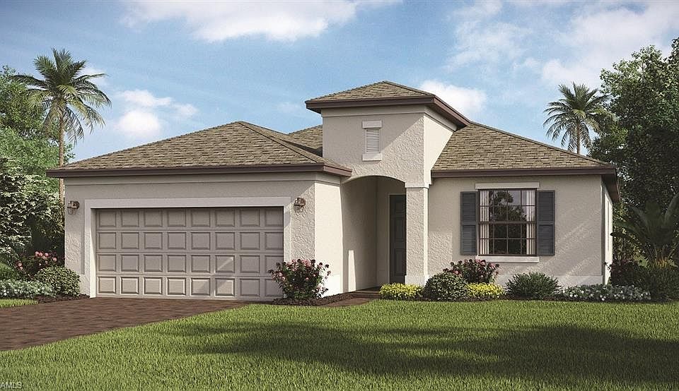 The Venice offers 1,849 square feet of versatile living space in a desirable split plan with three bedrooms and three full baths. The spacious island kitchen blends seamlessly with the family room and formal dining, flooded with light from large glass sliders leading to the generous screened lanai. An indulgent Owner's suite features two walk-in closets, dual sinks and a large spa shower. This home is complete with a two-car garage. Additional options include white cabinets, granite countertops in kitchen/bathrooms and tile throughout the home. River Hall is a master-planned community designed to include distinct villages, a school, fire station, Town Hall and a Town Square. Set among 1,500 acres of oak hammocks, where half of the land is set aside for open space and lakes, our gated communities are connected by meandering trails and sidewalks. Six miles east of I-75 in Lee County, River Hall is near Fort Myers but a world unto itself. Rendering, photos & virtual tour are of model & are used for display purposes only. Estimated delivery January/February 2023.