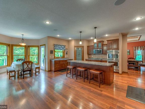Check out this massive 5 Bed 5 Bath home on 5.49 very private acres in Hammond. Fantastic location close to 94 to make commute to Twin Cities a breeze. Each bedroom has access to it's own bathroom, 4 bedrooms on the upper level and 1 in lower walkout basement. This home is a hostesses dream with a very open floor plan in the kitchen/living area. Main level family room includes a gas fireplace and access to the screened porch. Lower level has plenty of room for entertaining with a wet bar and walk out to lower level patio. Lower level also includes bedroom and den/library space with a gas fireplace. Call today to see this beautiful home in a private setting.