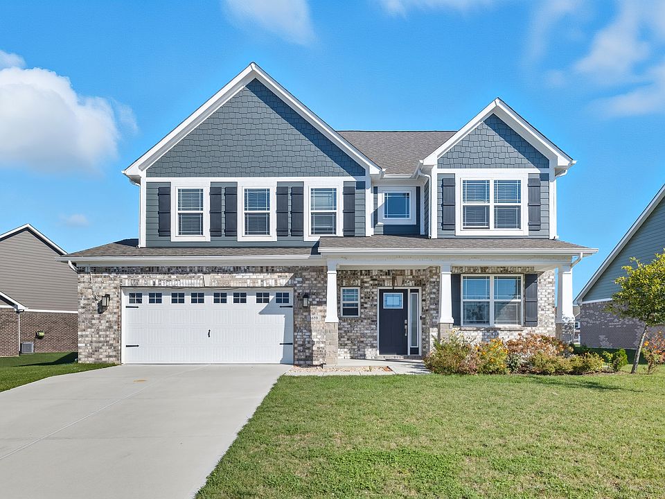 Located in the popular Fieldstone community in Greenwood, this like-new property is LOADED with features and ready for its next owner! Starting outside, find a brick and vinyl exterior, covered front porch, 2-car garage with bumpout for extra storage, and a rear patio. Step inside, and you'll find an open, inviting floorplan. LVT flooring on the main level, faux wood blinds, large living room, flex space on the main level, and a DREAM kitchen - shaker cabinets, recessed lighting, quartz counter tops, stainless steel appliances, tile backsplash, center island with pendant lighting, breakfast nook and a pantry! Upper level has a loft area, guest bathroom with dual vanities, 3 guest bedrooms, and a soaring master bedroom with ensuite bathroom with dual vanities, tiled walk-in shower, and oversized closet! All this, plus great proximity to schools, dining, and shopping options, as well as quick highway access