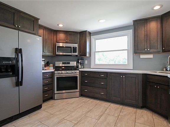 Honey stop the car! This impressive 3 bed 2 bath split-level has an inviting and warm entry. You'll be thrilled with the gleaming Bamboo flooring in the living rm, dining rm, foyer, family rm, hallway & master bdrm. Completely remodeled and open concept kitchen features Corian countertops, recessed lighting, vinyl tile flooring, soft-close cabinets, dishwasher, disposal & SS appliances. Updated bathroom w/wainscotting, tile flooring, new vanity & shower. Basement rec room w/dry bar, tile flooring, recessed lighting & TV included. AC, water backup sump, 150 amp circuit breakers, GBW, 3 zone heating, 6-panel doors. The family rm has recessed lighting, wood-burning fireplace w/gas assist & French doors to the yard. Concrete patio overlooking the large fully fenced yard with shed, playset & firepit. Updates include: Shed roof '20. 1st-floor bathroom remodeled '19. Bamboo flooring '18. Front door '17. Fully remolded kitchen including opening walls and installing sliding doors off dining rm '16. Some windows & concrete patio '14. Fenced yard '13. You will not be disappointed with this one! Showings begin immediately with any offers due 8/18 by 7pm.