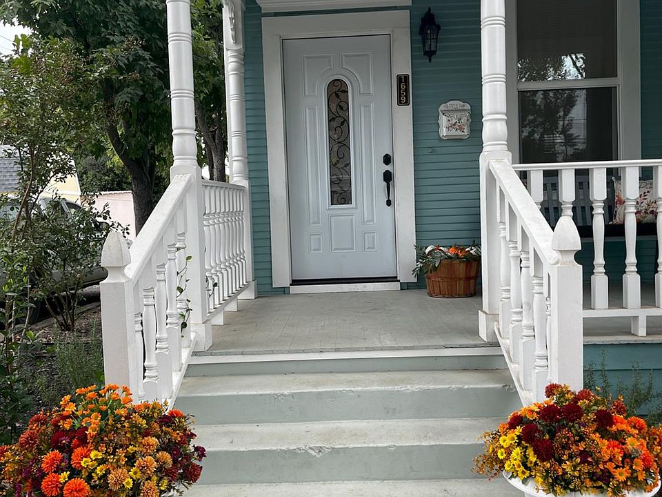 Gingerbread trimLight fixturesCustom bathroomLaminate flooring