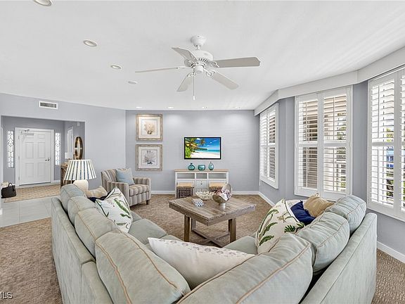 At the northernmost tip of Captiva Island, where the turquoise waters of Redfish Pass flow gracefully between the Intracoastal Waterway and the shimmering Gulf of Mexico, awaits one of Florida’s desired enclaves. Tucked behind the private gates of the world-renowned South Seas Resort lies Land’s End Village, an intimate retreat of just 17 buildings, each thoughtfully designed with only four residences above covered parking. This rare collection offers an exclusive lifestyle in one of the Gulf Coast’s most breathtaking settings. Here, every moment feels like a postcard. Watch sailboats drift effortlessly along the Intracoastal, cast into world-class fishing grounds at Redfish Pass, or stroll Captiva’s powdery white sands as the sun melts into the Gulf—painting the sky with unforgettable sunsets that have become a cherished nightly ritual. Beyond the shoreline, the lush greens of a manicured golf course and tropical landscapes create a vibrant backdrop worthy of a travel magazine spread. This beautifully appointed two-bedroom, two-bath residence embodies comfort and sophistication. An open-concept kitchen flows seamlessly into the living space, where walls of glass invite in the outdoors. Expansive screened lanais frame sweeping views of emerald fairways, glistening lakes, and the shimmering waters of the Bay and Gulf beyond, bringing the essence of island living to every corner of the home. Land’s End Village is more than a residence, it’s a lifestyle. Owners enjoy a private pool and fitness center, while the South Seas Resort itself is undergoing an extraordinary transformation. Soon, residents and guests will experience enhanced dining, a full-service marina, family-friendly waterparks, an executive golf course and countless new amenities that redefine luxury resort living. Whether envisioned as a private coastal sanctuary or an enticing investment opportunity in the thriving vacation rental market, this residence offers unparalleled flexibility, free of rental management commitments. It is an invitation to be part of the revitalization of one of Florida’s iconic resorts and to own a piece of paradise at the water’s edge.