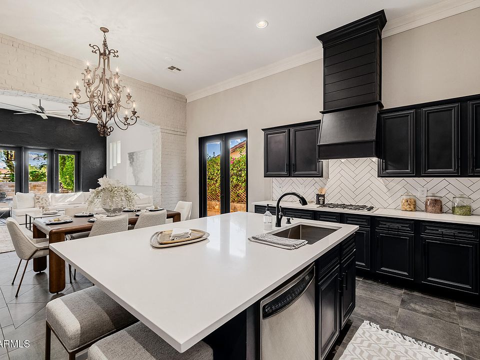 Nestled in the scenic Desert Uplands of Northeast Mesa, this exquisite Tuscan-contemporary residence is a rare gem set on a premium lot in one of the East Valley's most sought-after communities. Designed for both elegance and comfort, the home features 12-foot ceilings throughout, creating an airy, expansive ambiance that complements its sophisticated style and modern upgrades.