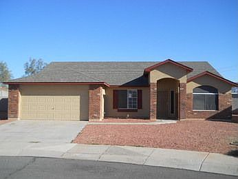 GORGEOUS home in PERFECT Apache Junction location! Living room has light neutral tile, vaulted ceilings, and picture windows covered by plantation shutters! Great room has light tile leading to upgraded eat in kitchen with center island, breakfast bar granite counters, plenty of dark cabinet space, mosaic tile backsplash and stainless steel appliances. Guest bedrooms are complete with plush carpet and ceiling fans. Full guest bathroom with upgraded single sink vanity. Master suite has plush carpet with ceiling fan, spacious walk in closet, and large picture windows. Full bathroom with separate upgraded walk in shower and soaking tub, upgraded double sink vanity. HUGE backyard is complete with covered patio, sparkling pool and built in BBQ!