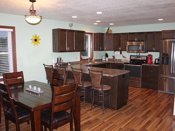 A great country home nestled at the end of a cul de sac with amble space to enjoy outside and in. With over 2 acres to to enjoy with family and pets, it is useable for a playset and even more space to add a shed for more storage. This home was constructed in 2015, so a nice modern look and appeal. An open concept living, kitchen and dining area with great access from the patio doors to the back yard. Kitchen offers stainless steel appliances, dark stained cabinets, good counter space and a nice sized pantry closet. The laundry room offers a half bath and quick access from any area. Master suite with bathroom with double sinks and bedroom/den finish off the main level. Lower level features daylight windows in both bedrooms and family room area. Great storage area, full bathroom completes.