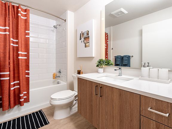 - Exterior features: 2 Finish Scheme Options, Bicycle storage, EV Parking Stalls, Floating bathroom vanities, Free Weights, Fully tiled tub/shower surrounds, Glass-inset barn doors, Illuminated bathroom mirrors, LVP flooring throughout all homes, On-Site Maintenance, On-Site Management, Quartz Countertops, Studios, 1-Bed, 2-Bed, 3-Bed, and Penthouses, Upgraded Closet Shelving in select homes