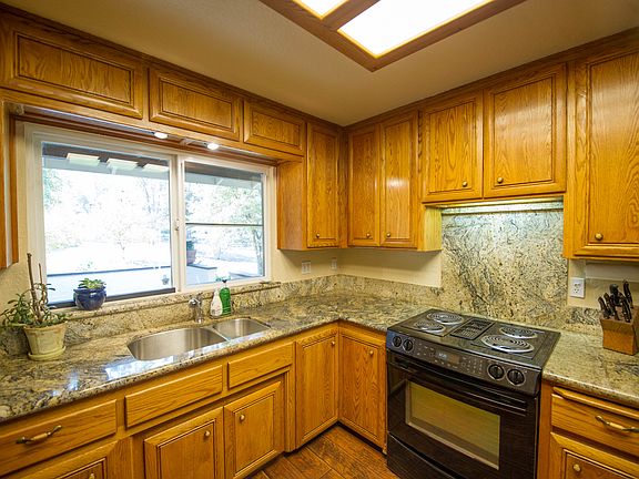 What a special setting - a gorgeous, flat tree studded 1.3 acres. It feels even bigger when you are there. The home sits ideally on the lot with huge majestic oaks around as well as plenty of open space in the front and back yards. The house itself is a one-level home with a great updated kitchen with gorgeous granite counters and a huge dining room finished in warm wood tones. French doors open to a lovely covered back deck - perfect for indoor and outdoor entertaining. A large living room with rich brick fireplace also connects to the outdoors with a wall of sliders. The home has room for everyone with 4 bedrooms - including a large master bedroom, with sliding doors, walk in closet and ensuite bathroom. 3 additional bedrooms, all with walk-in closets. Outside is an incredible shop that was used for extensive carpentry work with a dust collection system in place - it has tons of space and a full sliding door entry if your interest runs to cars or other machinery. A large circular driveway is inviting and provides tons of parking for your guests. Great location between Sonora and Twain Harte. This is a perfect place to call home.