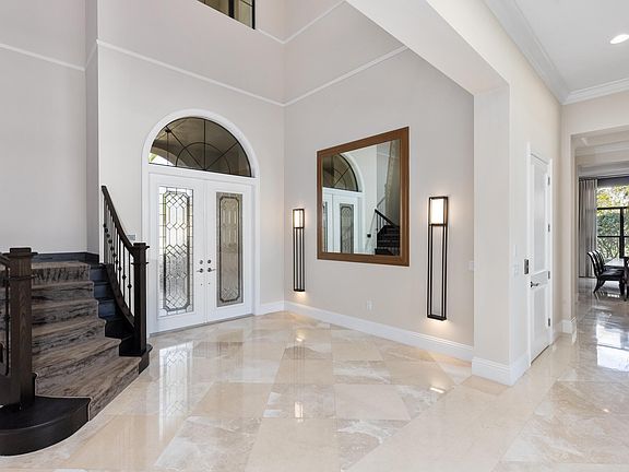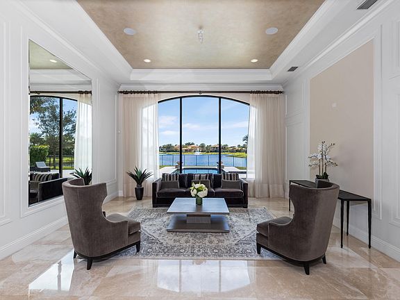 Discover the breathtaking 16598 Fleur De Lis Way, an extraordinary Palazzo model residence nestled within the prestigious enclave of Seven Bridges. Crafted in 2016, this exquisite property epitomizes refined luxury and offers unparalleled sophistication. Graced by its premier location, commanding views of a tranquil lake and a picturesque fountain, this exceptional property spans a total of 10,070 square feet, with an interior space of 7,757 square feet, set upon over half an acre of meticulously manicured land. Enter through grand double doors to be greeted by a palatial formal sitting area adorned with towering windows that frame the picturesque vistas, infusing the space with an ethereal allure. With six grand bedrooms and six and a half baths, including a lavishly appointed primary suite boasting a morning bar and bespoke custom closets, every corner of this estate exudes opulence.