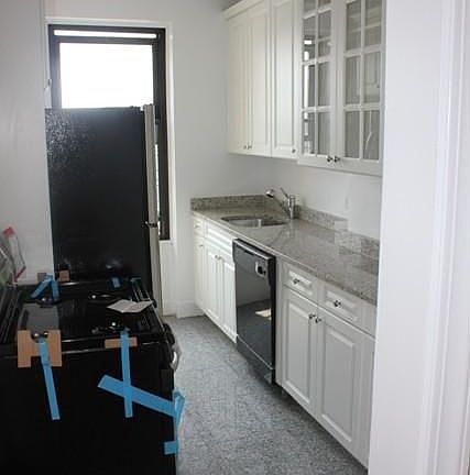 Amazing 1 bedroom Natural maple shaker kitchen cabinets with granite countertops and floor, Stainless steel appliances, Marble tiled bathroom.