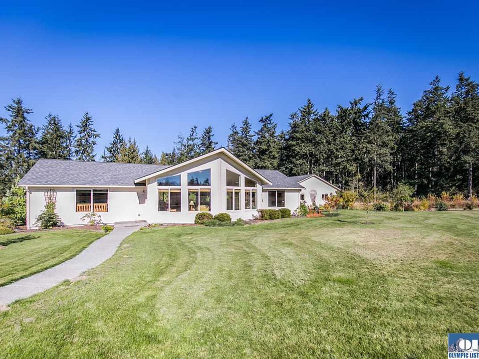 Located right next to the beautiful Sunland golf course, and walking distance from Jamestown beach! Just outside the city of Sequim, minutes from shopping, but with almost two acres to call your own. Southern View Estates features a free community irrigation system, paved road & paved streets. The home is designed to take advantage of the southern exposure with passive solar heating & the panoramic mountain view. Also has a large finished workshop & huge outdoor room!