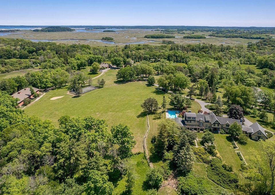 This 63.7± acre coastal estate is a working equestrian farm. The opportunity to acquire a property of this scale and character rarely presents itself. The entry drive rises gradually between fenced pastures offering pastoral views along the way to the crest of the drumlin at 98 ± feet where the 5-bedroom c. 1911 Tudor Revival-style main house is beautifully sited. There are panoramic views in every direction including distant ocean views from the 3rd floor and Essex Bay from the 2nd and seasonally from the 1st. The grounds are stunning & the land is a mix of meadows, fenced pasture, paddocks, lawns, gardens, woodlands, tidal creek frontage, salt marsh and riding trails. The offering includes a 1- bedroom barn apartment, an 11-stall stable, a 66’x164' indoor riding arena, equipment garage, shed/boathouse, tennis court and deeded rights to nearby tidal dock. Additional configuration/adjoining parcels potentially available