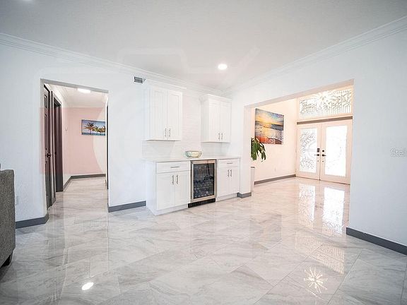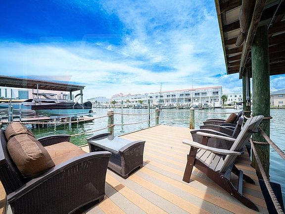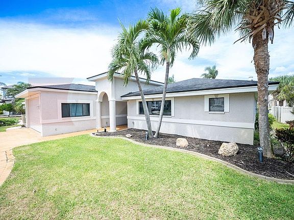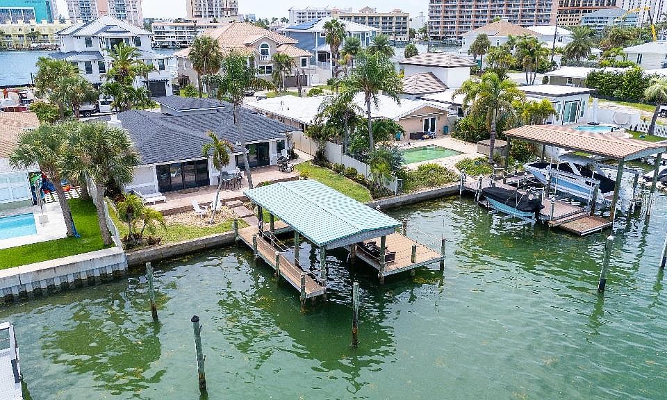 Stunning waterfront property steps from the beach with an open floor plan integrating the living, dining, kitchen, and oversized game room areas making it perfect for entertaining and everyday living. Other features are the large laundry room with tons of storage, the high ceiling foyer that takes your breath away as soon as you step inside, the polished porcelain tile throughout, dual AC system, 2025 water heater. In addition to the immaculate interior, the outside of this amazing home has a large circular driveway, several flower beds, herb garden, automated sprinkler system, covered boat dock with trex decking, and amazing views. Bring your water toys to this deep water canal with the quickest access to the gulf and islands. Unbeatable location! All freshly updated including a new roof August 2025. Come take a look now and live the Clearwater Beach dream.