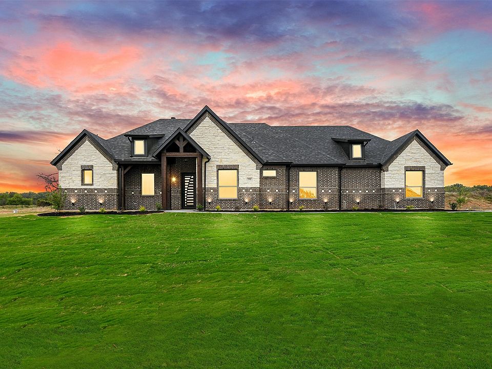 A Custom New Construction Home In Azle TX, Situated on 1 Acre Lot. This Stunning Home Features 2,562 Sqft, An Open Floor Plan consisting of 4 Beds, 3 Full Baths, 3 Car Garage, Office, Living Room, Dining Room, Gourmet Kitchen with Waterfall Quartz Countertop Island, Custom Cabinetry, Stainless Steel GE Appliances, Waterproof Flooring, Wood Burning Fireplace, Primary Suite with Vaulted Ceiling, Spa Like Primary Bath with Free Standing Tub, Shower System, And A Dream Walk in Closet. Large Back Patio, Great for Entertaining, With Expansive Backyard Room for an Olympic Size Pool, Sprinkler System and SOD surrounding Home, Privacy Wood Fence is Allowed, NO HOA, Come See This Breathtaking New Subdivision With Custom Homes Built with Luxury In Mind.