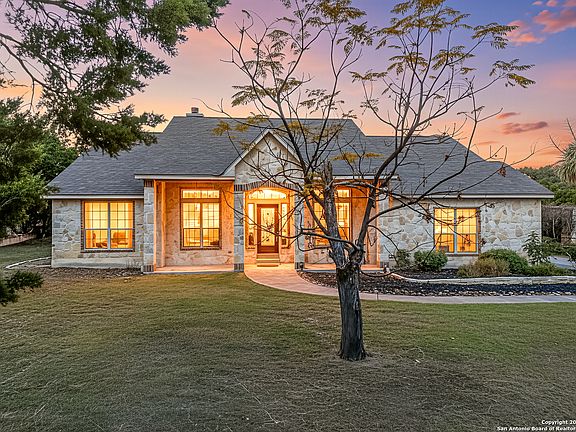 Welcome to this beautiful one-story home in the gated community of Windmill Ranch in Spring Branch, Texas. Set on 1.23 acres, this 4- bedroom, 3-bathroom property offers space, comfort, and plenty of room to relax or entertain. The home features a light and bright open floor plan with two living areas and an island kitchen, creating a warm and functional layout for everyday living. The spacious primary suite has been recently updated and provides a comfortable retreat for unwinding at the end of the day. Updates throughout include a renovated primary bathroom, brand-new AC unit, new water heater, roof replacement in 2019, a 20kW solar panel system, high-power EV car charger, and 50-amp RV hookups. For those who love to work or create, the air-conditioned and insulated workshop offers the perfect space for projects or storage. The property also includes a carport, a gym area, and boat storage for added convenience. The backyard is designed for fun and relaxation, featuring a fenced-in pool, an air-conditioned pool house, a backyard bar, and a game room. Massive oak trees shade a charming tree house, swings, and even a zip line-making it a true outdoor retreat for all ages. This home combines thoughtful updates with outdoor entertainment and natural Hill Country beauty. Schedule your private tour today and see all that this Spring Branch property has to offer!