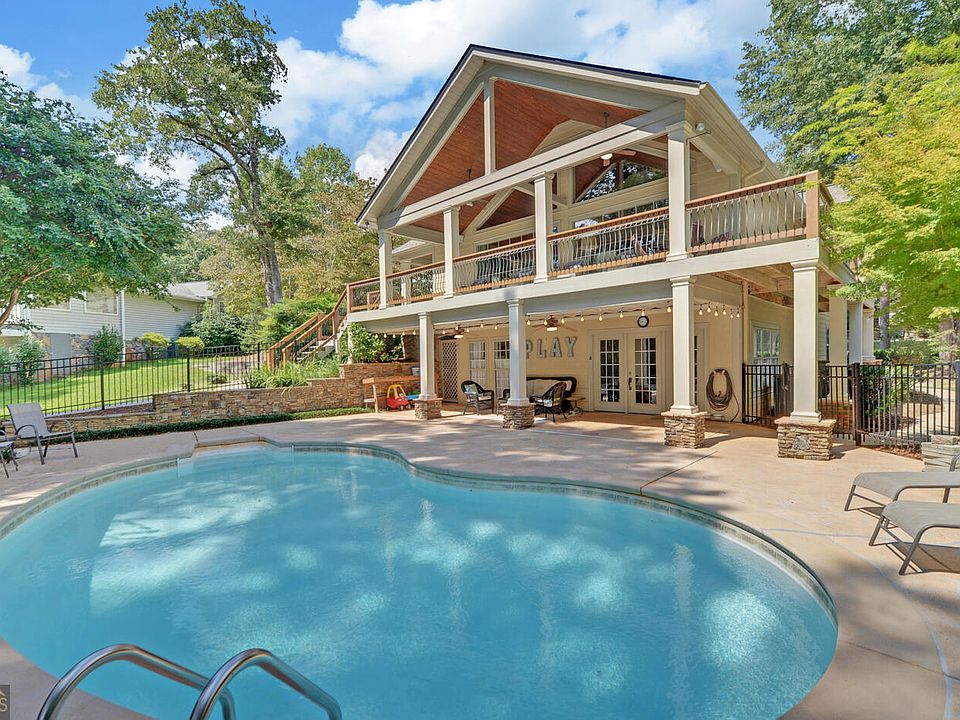 Lovely Lakefront Retreat with Breathtaking Views of Lake Hartwell. Welcome to this beautifully updated and spacious lakefront retreat on Lake Hartwell. With gorgeous open water views and luxury upgrades, this home is designed for comfort, style, and relaxed lakeside living. Step inside to find soaring vaulted wood ceilings and a wall of windows that showcase a view of the lake, private in-ground pool and gently sloping walk to the lake. The gourmet kitchen is spacious with beautiful countertops, upgraded appliances, and crisp white cabinetry, all open to the great room with a cozy gas log fireplace and a generous dining area-ideal for entertaining. The main-level primary suite is a private sanctuary with trey ceilings, a large walk-in closet, and a spa-like bath featuring a soaking tub, double vanities, and a separate tiled shower. A guest bath is also conveniently located on the main floor. Downstairs, the terrace level offers three additional bedrooms, a full bath, and a spacious second living area that opens to a covered patio and the kidney-shaped pool, all framed by a classic black iron fence overlooking the lake. Outdoor living is unmatched, with a balcony that spans the entire main floor, wrap-around porches, a second driveway with private basement entry, and mature landscaping all around. The recently installed new roof offers peace of mind, while the newly sodded backyard provides a lush, green landscape all year round. This is a yellow-lined property - there are no dock rights, however you can beach your boat for a day of play on the lake or kayaking . Full price offer includes most of the furnishings/furniture if desired. Motivated bring an offer.
