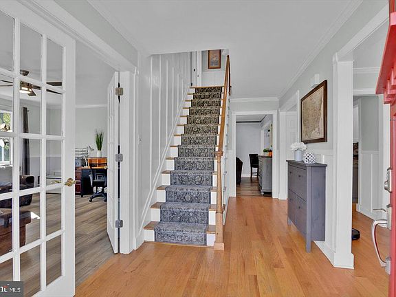 A Rare Opportunity in Marlton’s Country Farms Community Welcome to this extraordinary 5-bedroom Colonial, completely remodeled and thoughtfully expanded with two custom additions. Located in one of the nation’s most desirable zip codes, this home combines timeless design with modern luxury at every turn. From the moment you arrive, the curb appeal sets the tone—newer insulated vinyl siding, Andersen replacement windows, and a charming covered porch highlight the upgraded exterior. Step through the newer front door and prepare to be impressed. Custom millwork, gleaming hardwood floors, fresh neutral paint, and 5-inch baseboards with crown molding flow throughout, showcasing the home’s craftsmanship and attention to detail. The elegant formal living room is framed by French doors, chair rail molding, and wide-plank luxury vinyl flooring. A beautifully upgraded half bath with a gray vanity and coordinating mirror is conveniently located nearby. The formal dining room features rich hardwood floors, crown and chair rail molding, and generous space for hosting gatherings, with easy access to the kitchen.The gourmet kitchen is a true showpiece. Gray full-overlay cabinetry is accented by white glass-front uppers and smart built-ins for spices, cutlery, and cookware. A farmhouse sink, granite counters, and glass subway backsplash complement stainless steel appliances—including a gas range with listello backsplash niche, French-door refrigerator, and dishwasher. A coffee bar and breakfast area add functionality, while recessed and under-cabinet lighting ensure a warm ambiance. Open to the kitchen, the inviting family room features a beamed ceiling, custom built-in bookcases, and a wood-burning fireplace with stone surround, shiplap accent wall, and custom mantle. Natural light floods in from a slider leading to the deck. The 4-season sunroom with vaulted ceilings and walls of windows is located off the kitchen.A second stylish half bath and oversized laundry room with built-in cabinetry and tile floors complete the main level.Upstairs, the luxurious primary suite addition offers vaulted ceilings, a stained-glass transom, and abundant space for a king bed and sitting area. The spa-like en-suite bath rivals any five-star retreat, featuring Carrera marble floors, dual vanities, soaking tub, walk-in shower with frameless glass doors, and custom tile work. A sliding barn door ensures privacy, while the expansive walk-in closet boasts custom built-ins. Four additional bedrooms are generously sized with excellent closet space, and the hall bath shines with modern finishes, a custom-tiled shower, with bench and frameless glass door. Step outside to the Trex deck with vinyl railing—perfect for entertaining—overlooking a private, landscaped backyard. Additional highlights include: * Solar panels with energy bills averaging under $1,000/year * Extensive insulation for maximum efficiency This home’s exceptional upgrades and high-end finishes rival those found in million-dollar properties. Don’t miss your chance—schedule your private showing today!
