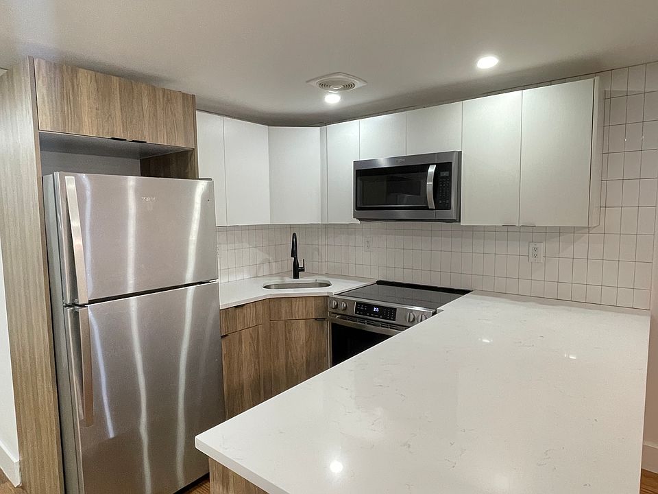 Step into an open living area with great natural light, hardwood floors, and a modern layout that makes the space feel both cozy and functional. Both bedrooms offer closet space and can comfortably fit queen-sized beds. There is also a small nook that can be used as a home office, or additional storage