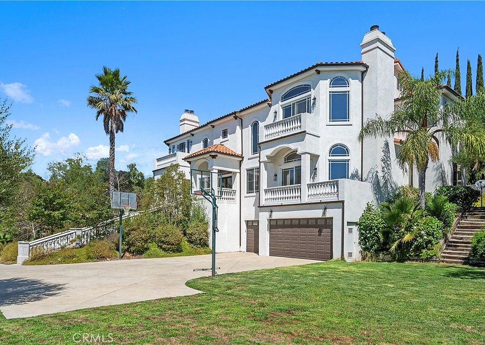 This wonderful 5 bedroom, 4 bath home is situated on a rare, predominantly flat acre in guard-gated Bell Canyon. Enjoy the light and airy atmosphere with many windows and sliding glass doors throughout capturing tremendous views of Bell Canyon and beyond! A stone porch with double iron doors opens to a dramatic two-story entry! The living room has gorgeous white porcelain floors, a fireplace & a bar! The state-of-the-art kitchen is a chef's dream equipped with Viking appliances including a 6 burner oven, a center island with a prep sink, and a large dining area! The kitchen opens to the spacious family room with dark wood floors, high ceilings, and walls of glass that open to a balcony! The enormous primary bedroom has a sitting room, a fireplace, a balcony, and a luxurious bathroom with a soaking tub, double sinks & rain shower! The spacious secondary bedrooms have crown molding, wood floors, and mirrored wardrobes. There is a bonus/family room upstairs with a beverage refrigerator, wood floors, vaulted ceilings, a fireplace and sliding glass doors that open to a balcony with views. In addition to 4 bedrooms upstairs, there is a ensuite bedroom on the main level. This property is a rare find with a large grassy yard that has room for a pool, ADU, horses, sports court, etc. Entertain on a partially covered stone patio equipped with a built-in Viking BBQ! Privately gated with a 3 car garage, a large driveway with plenty of room to park and double basketball hoops plus possible room for an RV. Bell Canyon is a guard gated community with a state of the art equestrian center, fitness center, tennis/pickleball courts, playground, hiking and riding trails. Bask in a Bell Canyon lifestyle that includes many annual community events in beautiful surroundings with access to the highly acclaimed Las Virgenes Schools.