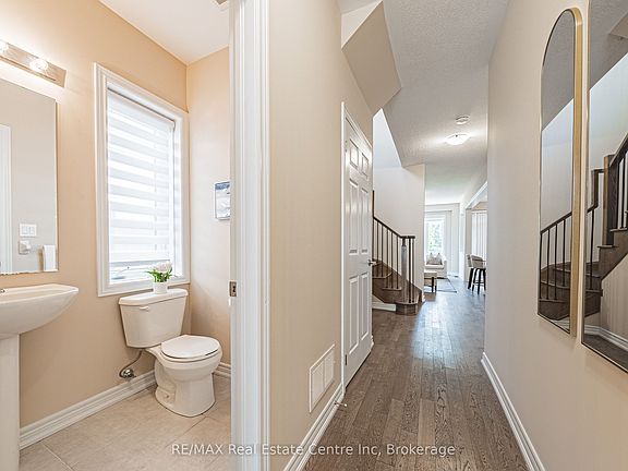 Welcome to your dream home in the heart of Guelph, where modern elegance meets everyday convenience! This stylish and contemporary executive end unit townhome offers three spacious bedrooms and three bathrooms across two beautifully designed levels. Nestled in a peaceful, family-friendly neighbourhood, the home backs onto a private ravine, offering exceptional privacy and a tranquil natural backdrop rarely found in urban living. Step inside to discover rich hardwood flooring throughout the main floor and a coordinating solid wood staircase that adds a touch of sophistication. The bright, open-concept kitchen is a chef's delight, featuring quartz countertops, a central island, a stylish backsplash, and upgraded stainless steel appliances, perfect for entertaining or everyday living. Upstairs, the expansive primary suite boasts a walk-in closet and a luxurious full ensuite bath. Two additional west-facing bedrooms provide generous space, double closets, and abundant natural light, ideal for growing families or home offices. Built in 2022, this home combines modern construction with smart design and energy efficiency. Commuting is effortless with quick access to Highways 6, 7, and 401, while families will appreciate the proximity to top-rated elementary and secondary schools. Just 12 minutes from the University of Guelph, 7 minutes from Conestoga College, and 5 minutes from Centennial College, making it a perfect fit for faculty, students, and professionals alike. Enjoy the comfort and calm of Guelph's central location without the congestion and high costs of larger cities. Book your showing today!