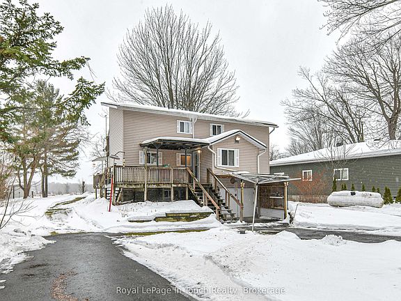 Welcome to your own slice of Georgian Bay. This inviting 3-bedroom, 2-bathroom waterfront home/cottage sits on an expansive 80 x 529 ft lot, offering privacy, space, and lovely water views in every season. With 1,502 sq ft of comfortable living space and a charming 1-1/2 storey design, this property is ideal for family gatherings, weekend escapes, or year-round enjoyment. Cozy up indoors or step outside to the large deck, perfect spots to relax, entertain, and soak in the peaceful surroundings. Outdoor enthusiasts will love the excellent boating and fishing, while winter brings easy access to snowmobile trails, making this a true four-season retreat. A triple garage provides plenty of room for vehicles, water toys, and cottage gear. Tucked away yet conveniently close to a Hwy 400, this cottage offers the perfect balance of seclusion and accessibility. Whether you're dreaming of summer days on the water or cozy winter weekends by the bay, this Georgian Bay home/cottage is ready to be enjoyed.