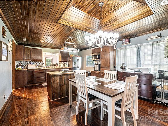 This refreshed bungalow home stands out with its covered front porch, attached garage and cobblestone walkway. Inside you'll find a warm, open floor plan with an oversized primary bedroom, a practical bath, and multiple living room spaces. The integrated kitchen and dining area features plenty of cabinets and countertop space, with island. The large, contemporary family room is the perfect gathering place for family and friends. A sprawling back deck overlooks a partially fenced, serene back yard with endless opportunity for enjoying the outdoors! Included appliances, washer, and dryer make this an easy home to move in to. Large outbuilding also stays! There is an old well on the property that is not in use. Well has been recently capped and may need to be abandoned. Home is serviced with water and sewer through Town of Granite Falls.